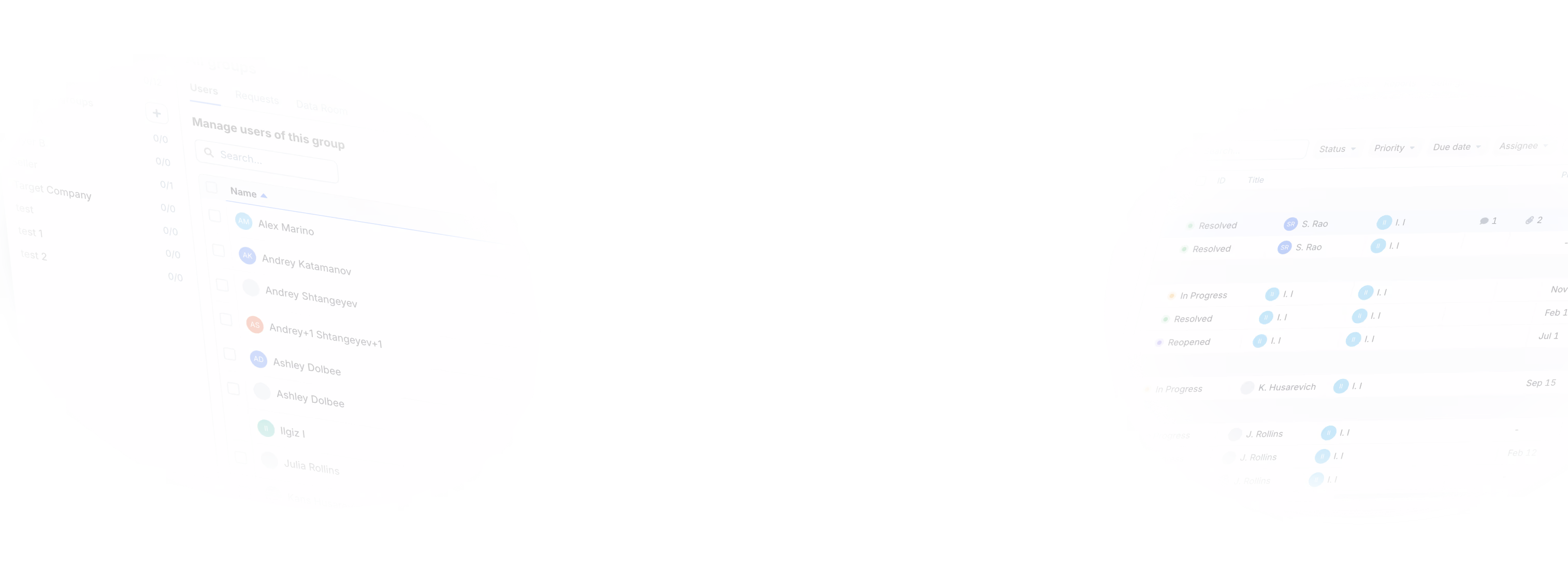 Run fundraising, M&A, and due diligence in one secure workspace with full access control and investor analytics.