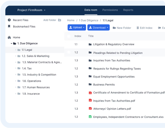FirmRoom was created for the sharing of financial information, storage of confidential legal information, managing of mergers and acquisitions, and managing of the IPO pipeline. For these and other business endeavours, FirmRoom is the tool to use.