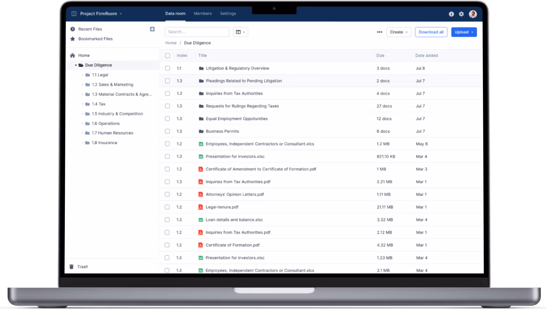 FirmRoom enables teams to efficiently collaborate with investors, partners, auditors, regulators, geologists, and experts in remote locations, ensuring a streamlined and secure diligence process.