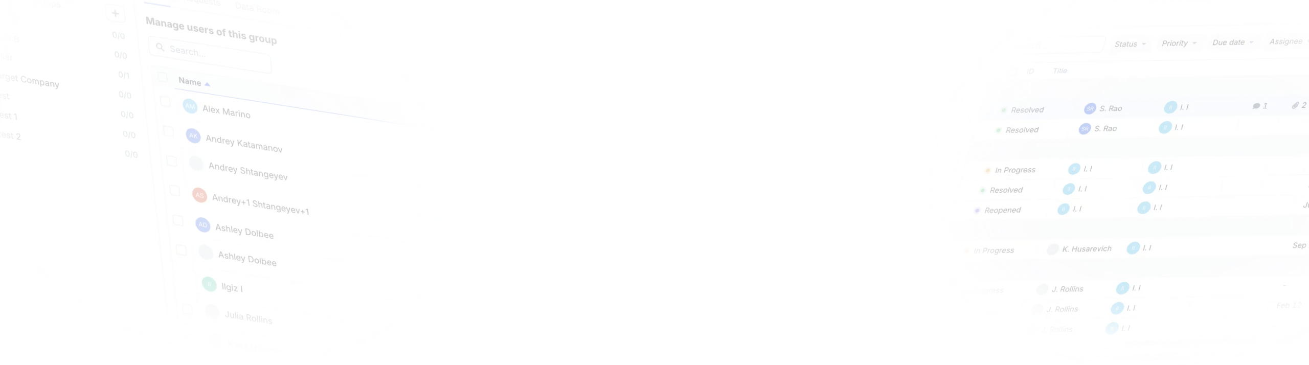 Manage Q&A, permissions, audit logs, and documents in one secure workspace.